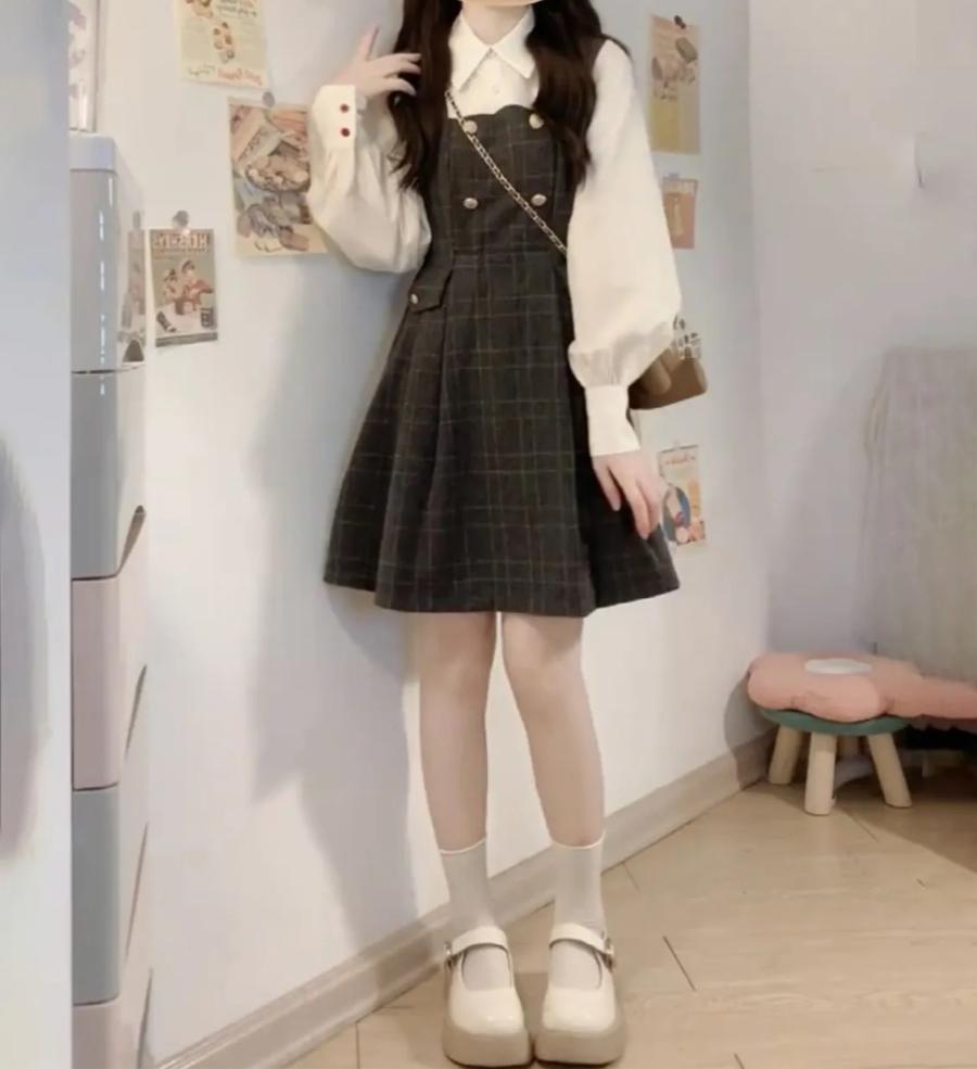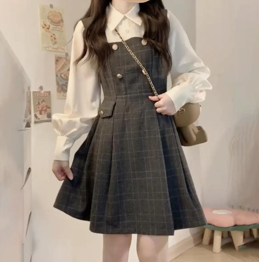 落ち着いたトーンのチェック柄が知的で上品な印象を演出