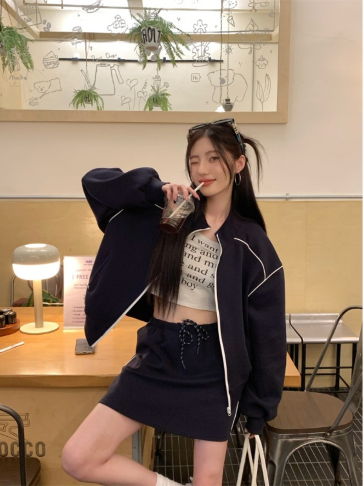 スポーツスエットシャツジャケット+ウエストヒップスカート