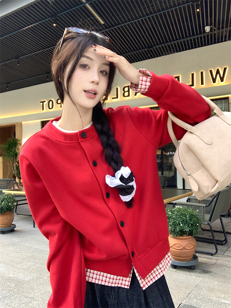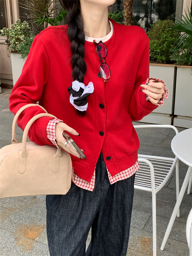 偽り二重デザインで、重ね着風のオシャレなスタイル。