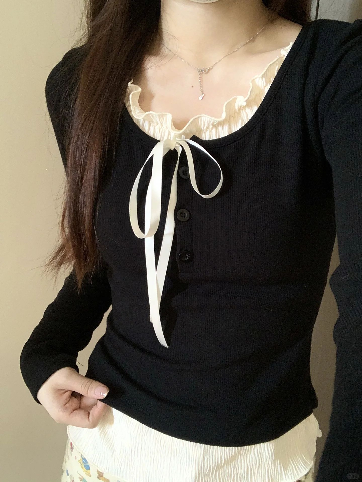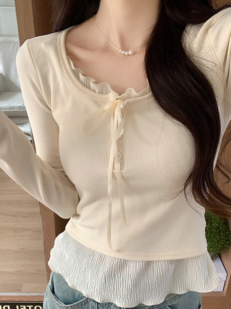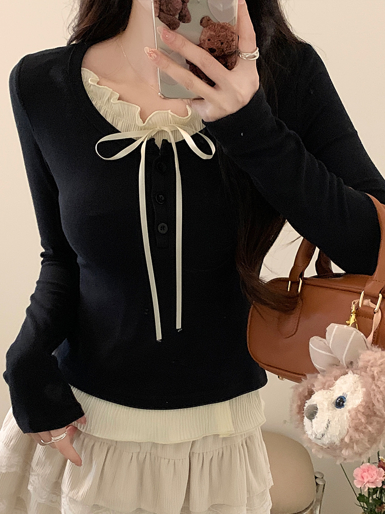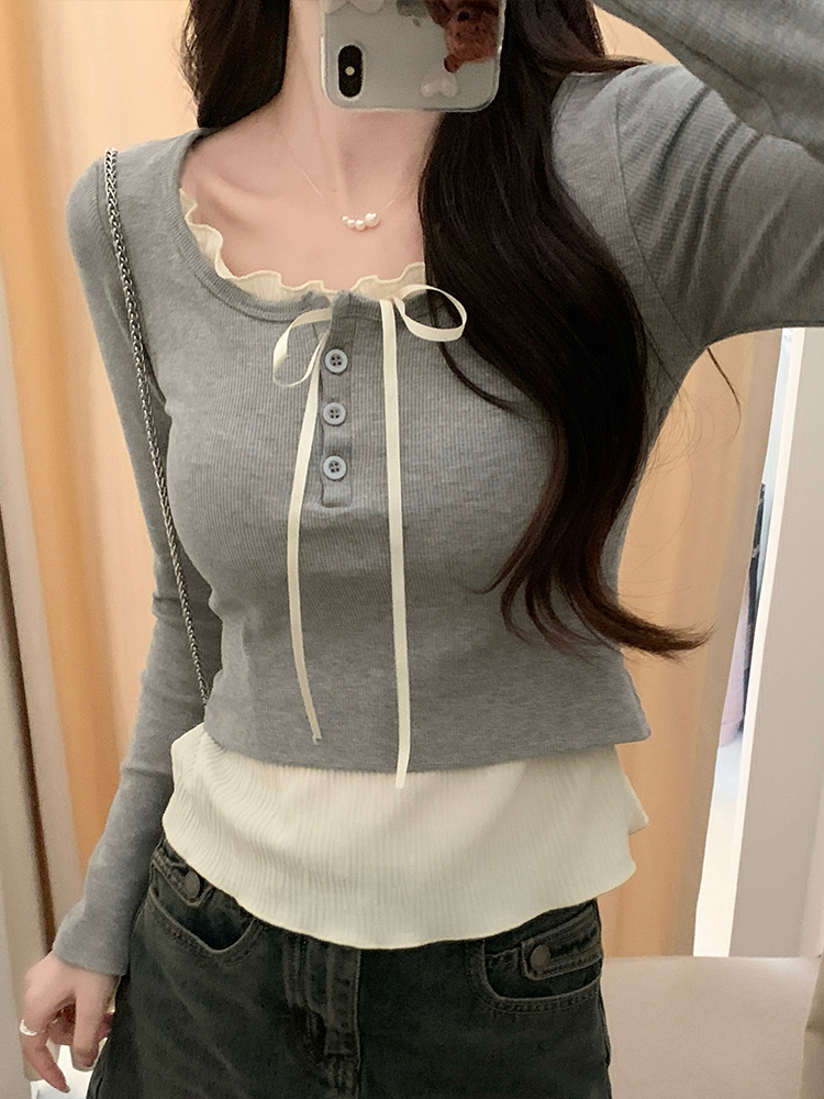 まるで重ね着しているように見えるフェイクレイヤードデザインが特徴の長袖トップスです。