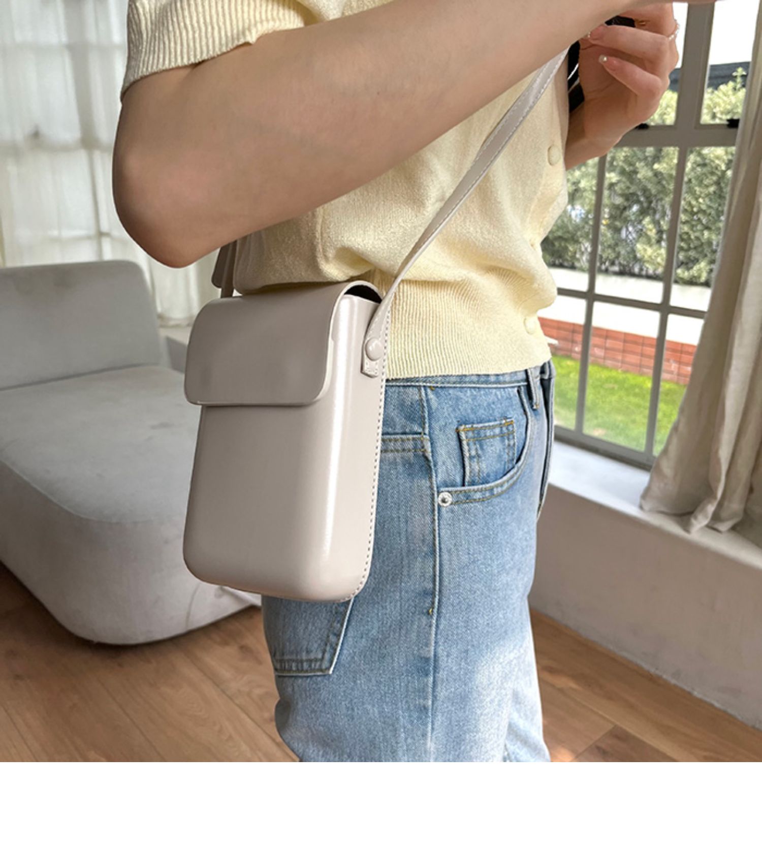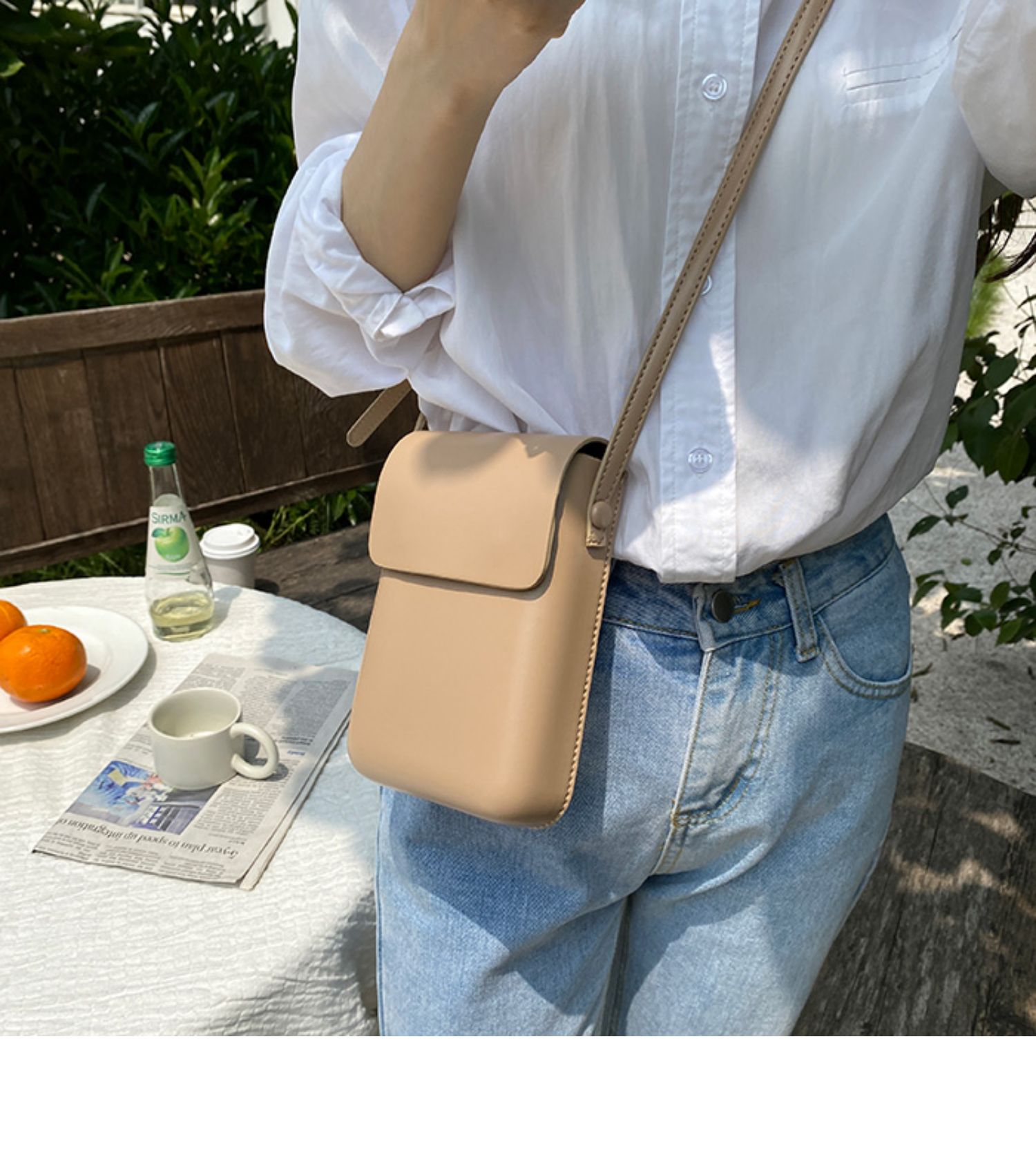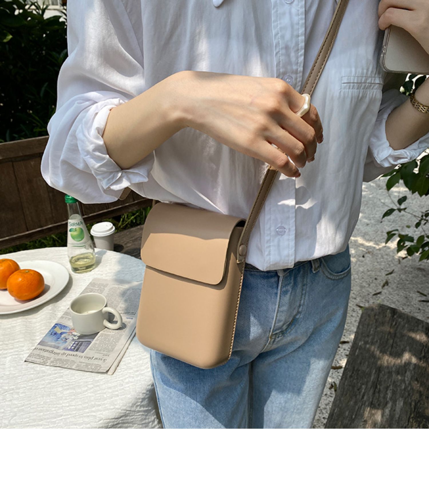 スマホ以外にも化粧品や小物などを入れることができる大容量収納。