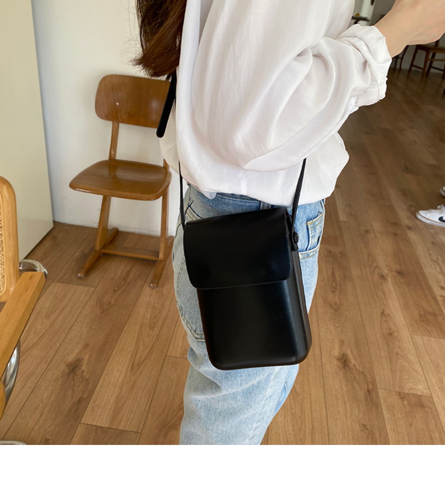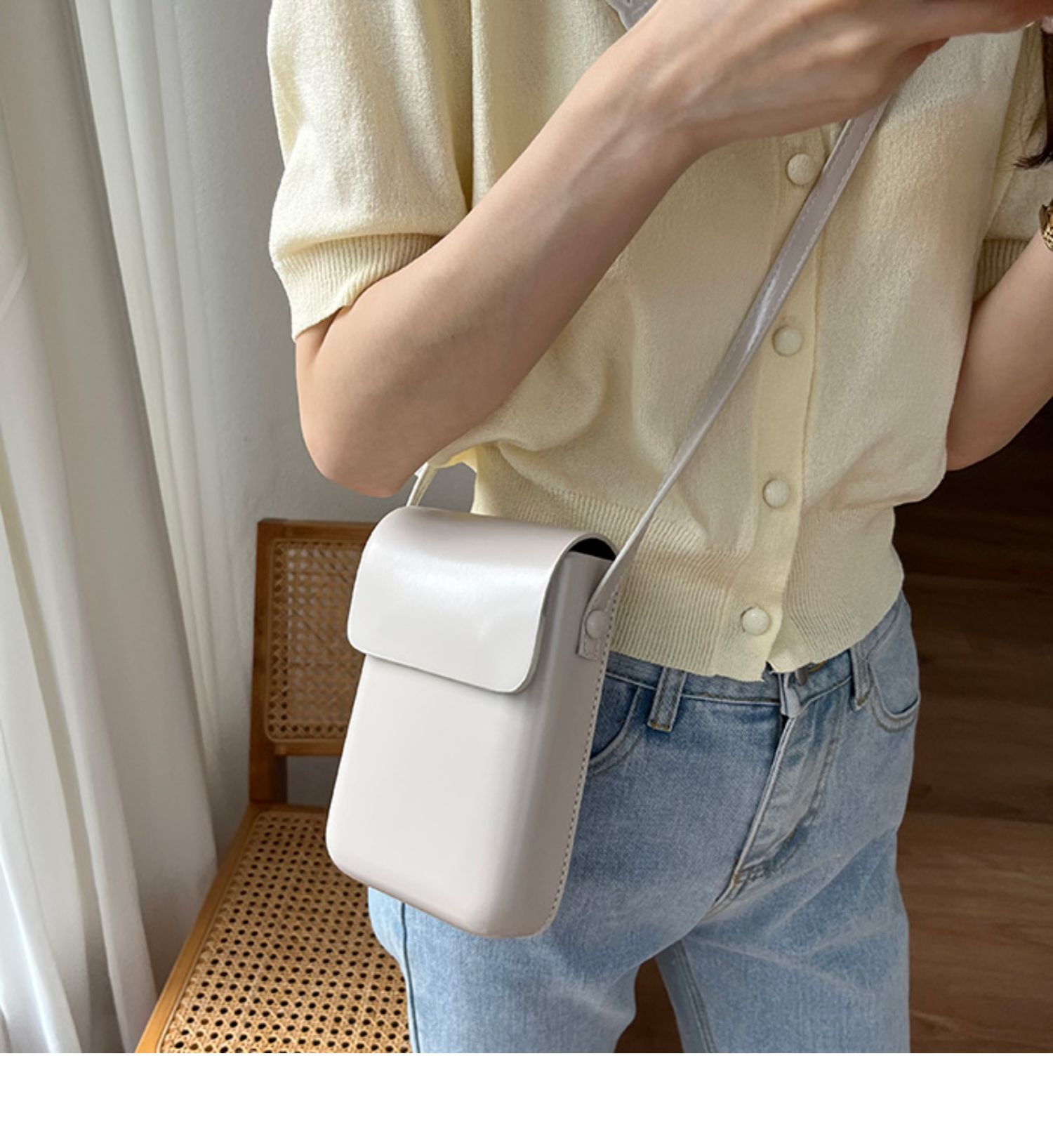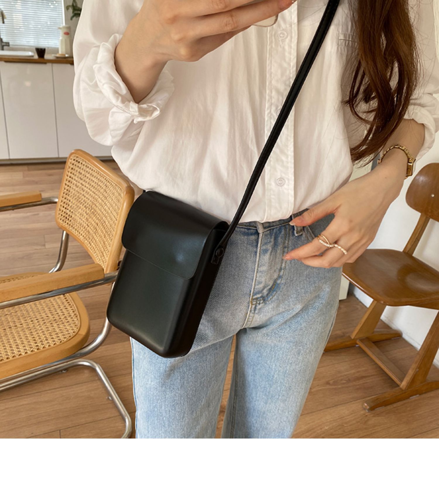 スマホ以外にも化粧品や小物などを入れることができる大容量収納。