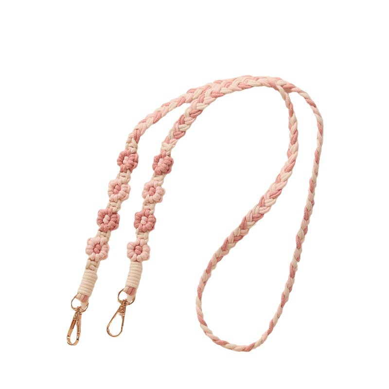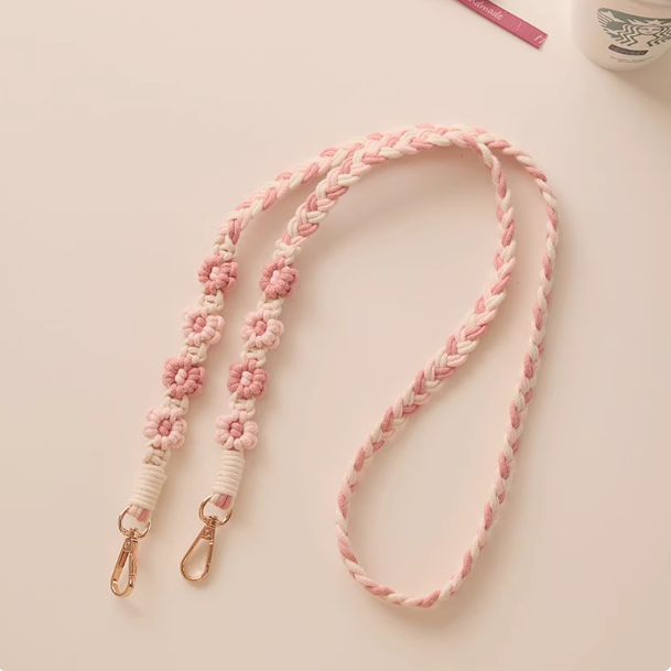 ・お花の「編み」が魅せる存在感。マクラメ編みのナチュラルな風合いに惚れるストラップです。