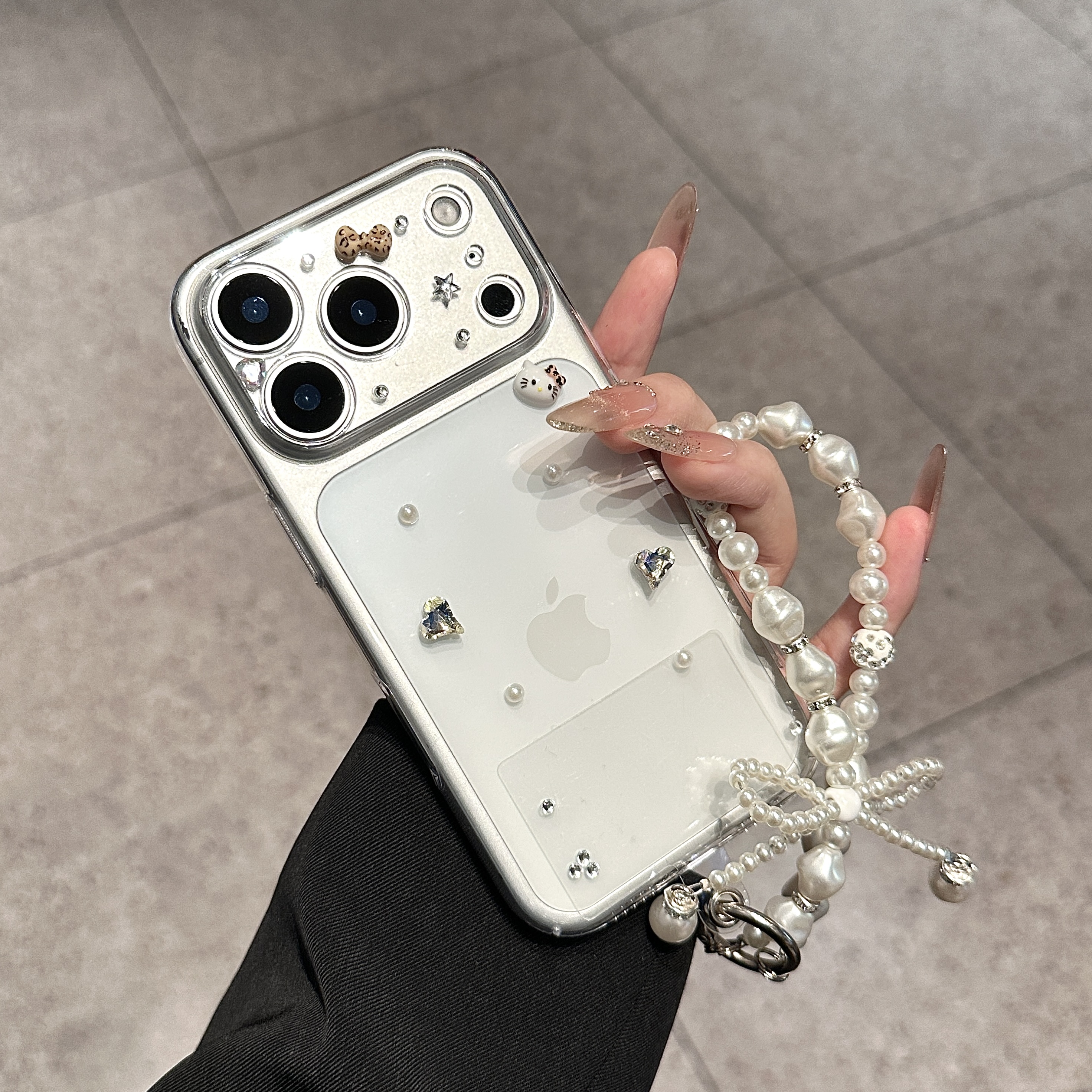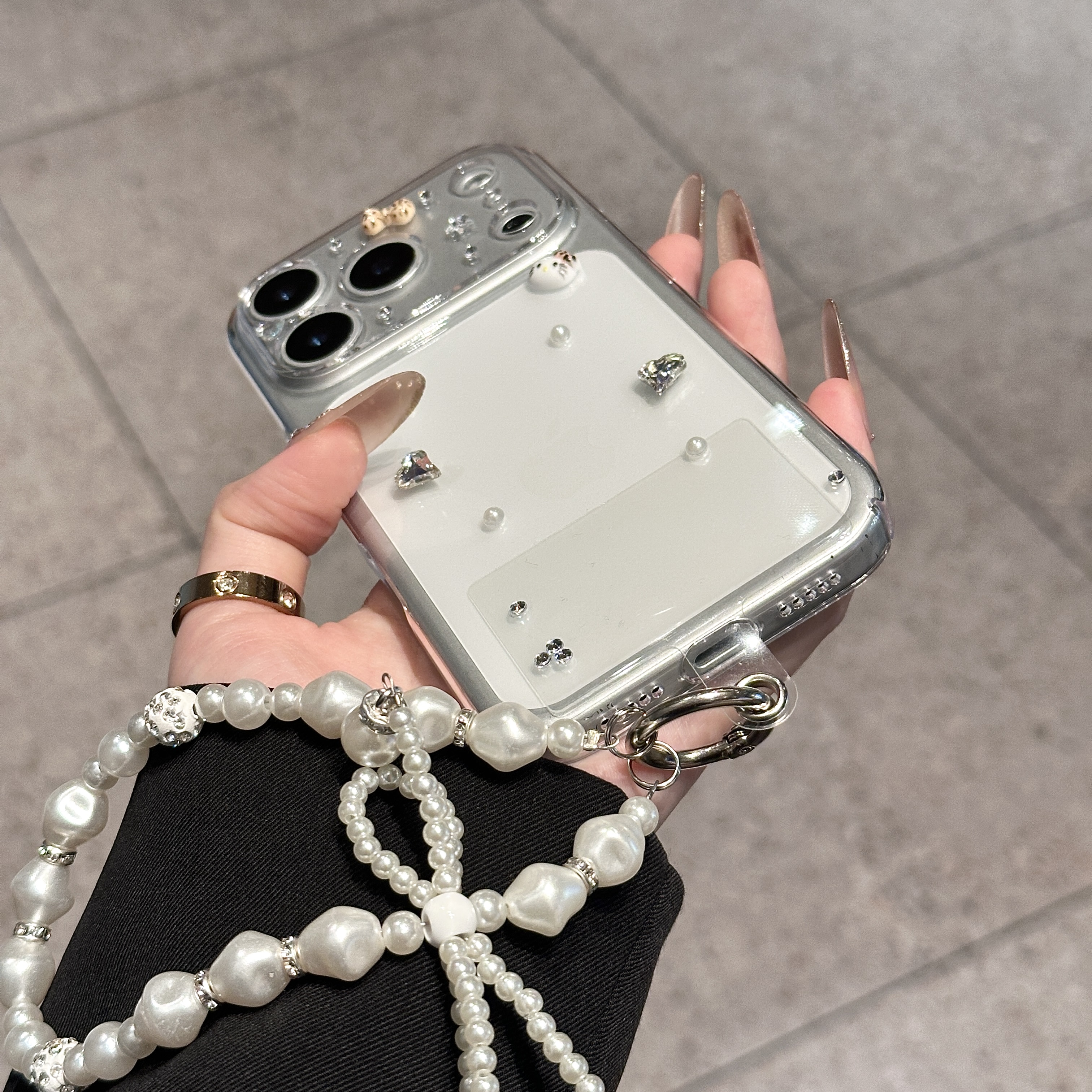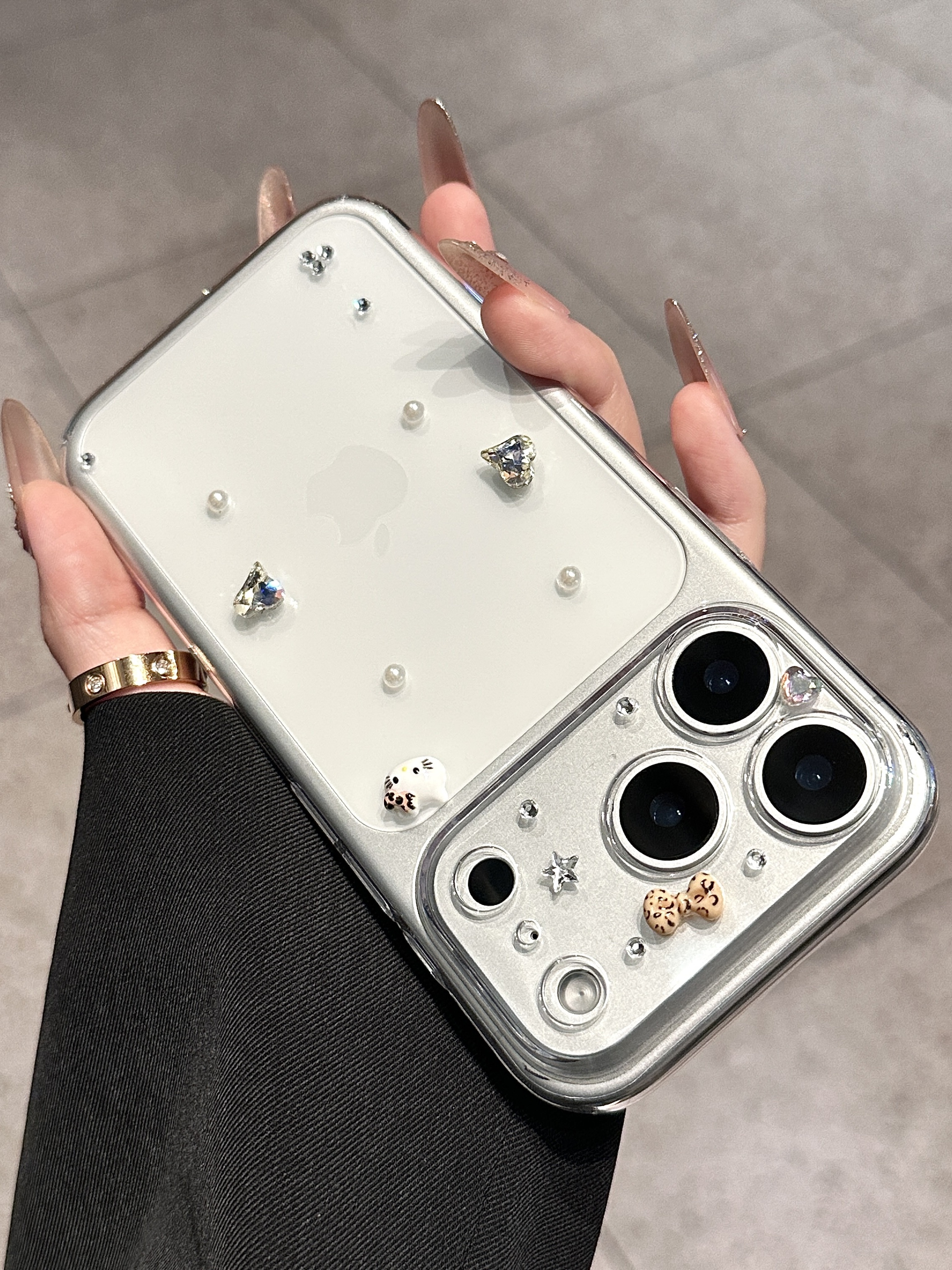 透明なベースがiPhone本体の色を活かし、高級感と洗練された印象を与えます。