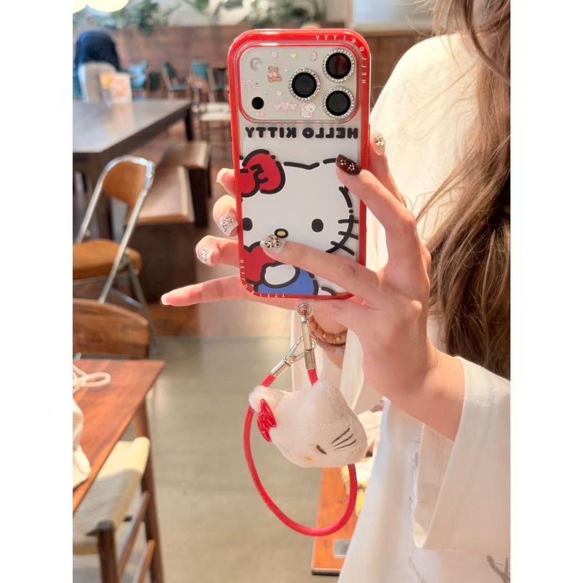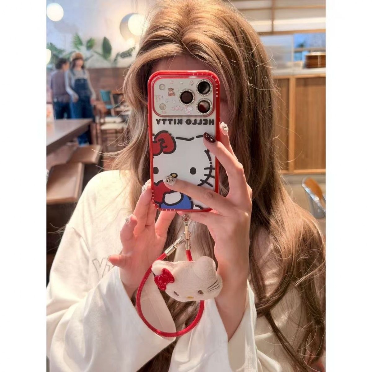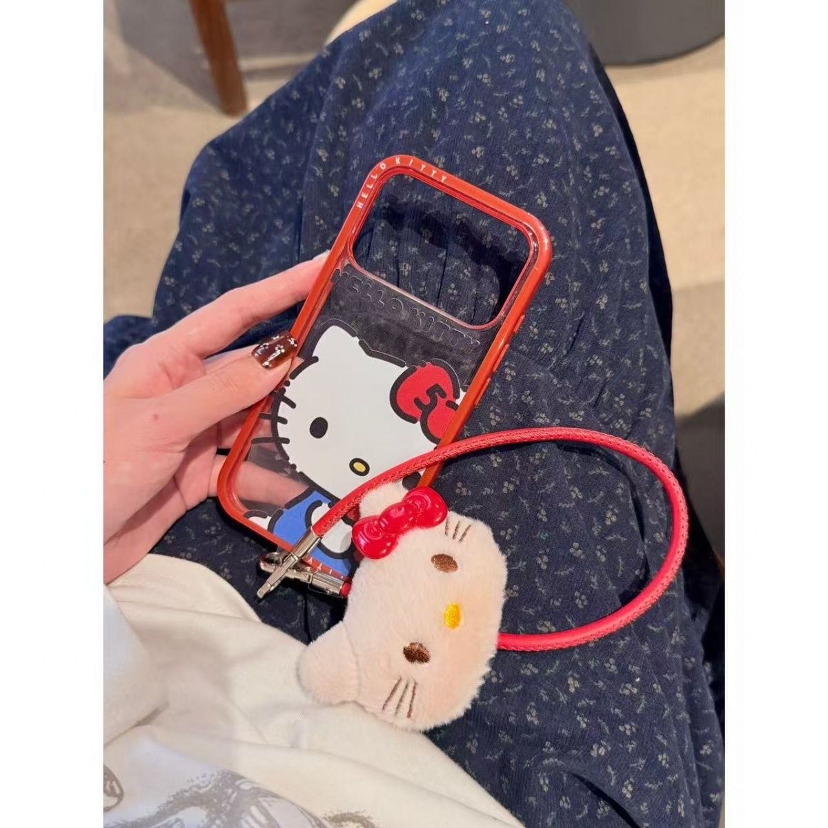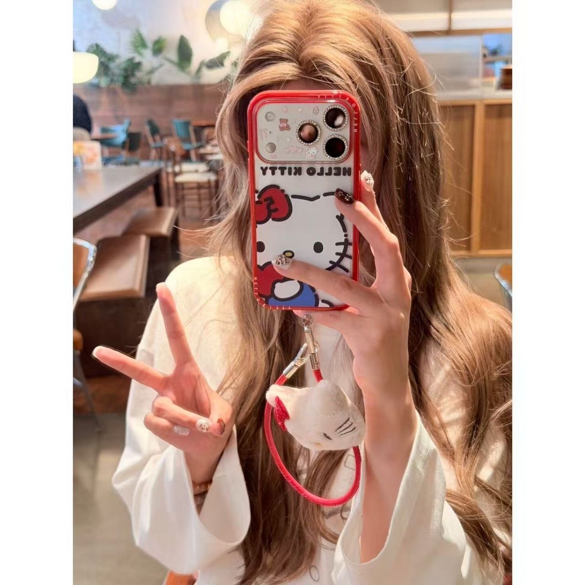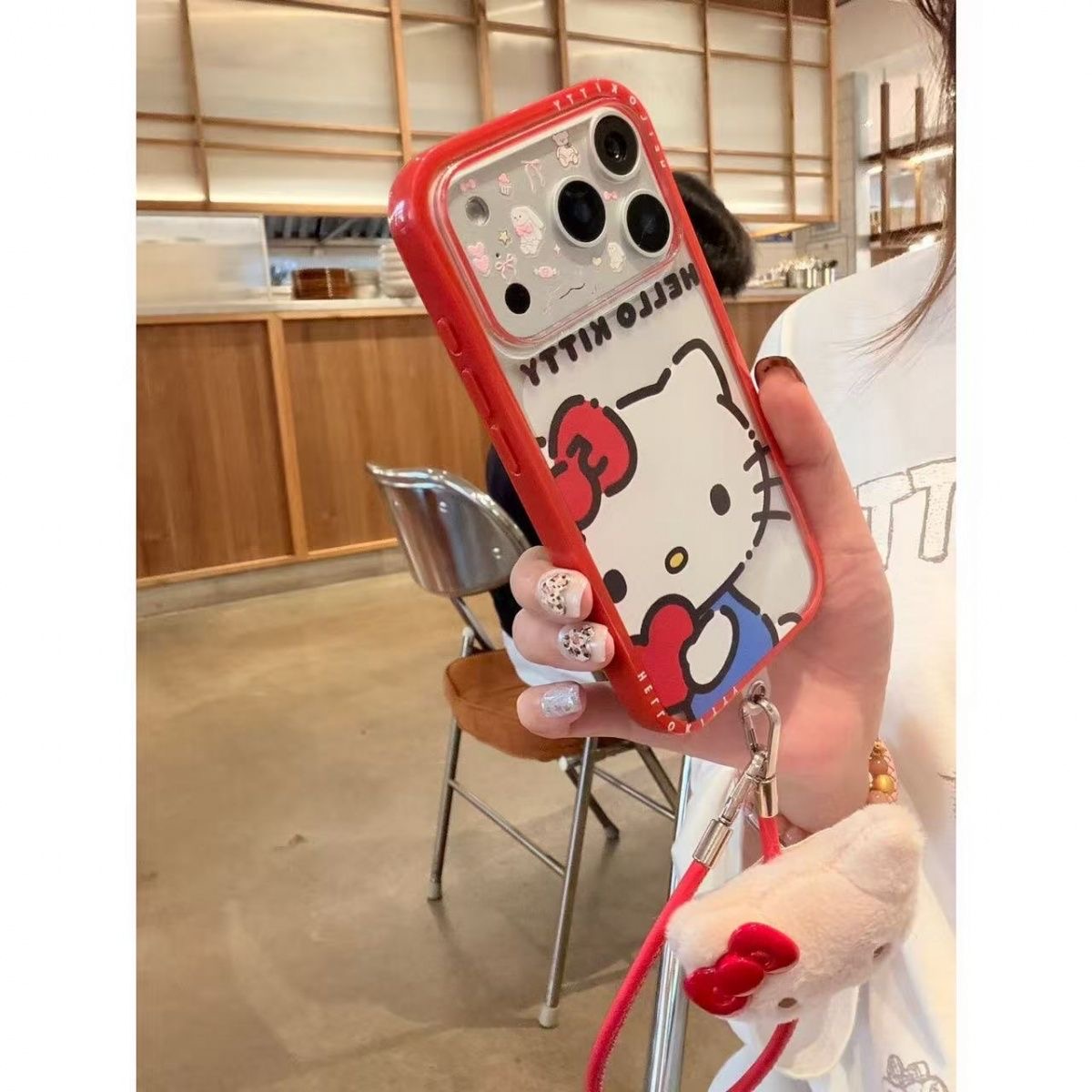 可愛いハローキティ ストラップ付き iPhone 17 Pro/Pro Max/16 Pro/15 Pro Max/14/13 対応 アイフォン保護ケース